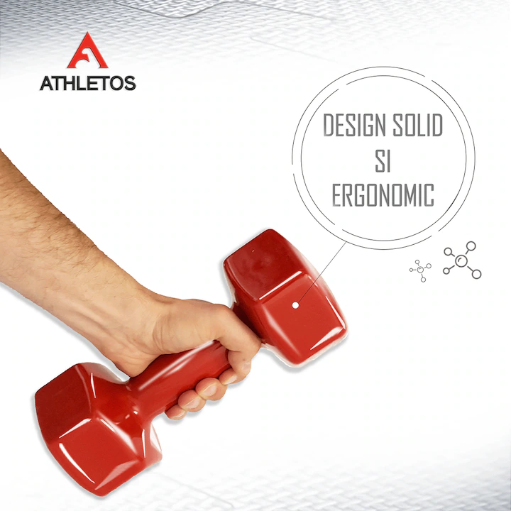 Ganterele sunt realizate din metal, cu suprafata din vinil, material care le confera un design placut, o aderenta crescuta la manevrare, rezistenta la zgarieturi. In cazul in care sunt scapate pe jos, stratul de vinil va proteja podeaua. Exercitiile efectuate cu ajutorul ganterelor va dezvolta musculatura bratelor, pieptului si a spatelui.